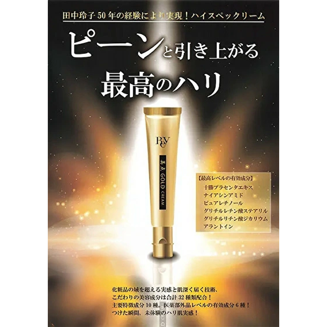 レイ ブリージング ローションなどの化粧水やクリーム、オイル類を塗布した後、パール大の美点GOLDクリームを手に取り、顔全体に塗布。