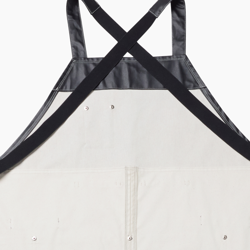 アーティザンクレーエプロンは、 防水性に優れた素材で製作され、 クラシックなオーバーフィットシルエットが高級感を演出します。