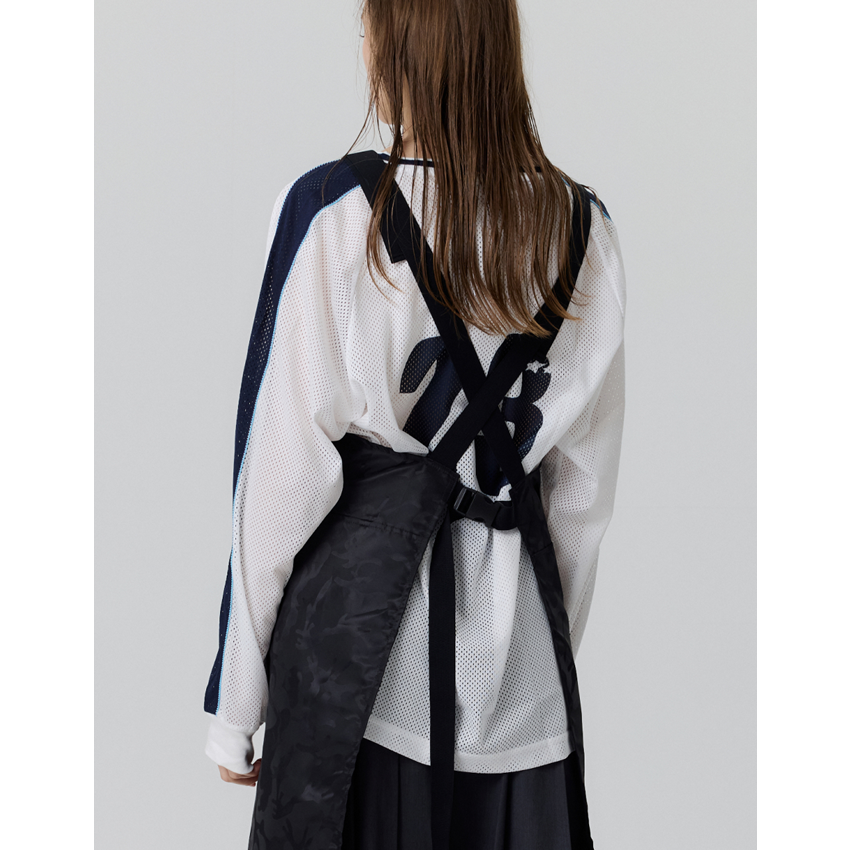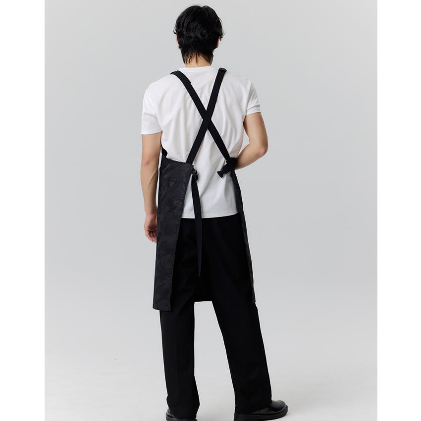生活撥水はもちろん、染毛剤、化学薬品の使用に不可欠な耐久性の強い生地で製作し、負担にならないカモフラージュパターンがスポーティなムードを演出します。