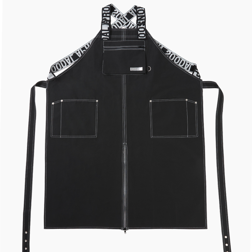 ブラックシャーク グラフィーエプロンは、日常の撥水効果はもちろん、色移りに強いシャークスキンのようなマットで滑らかな撥水素材を使用し、優れた耐久性を実現しています。