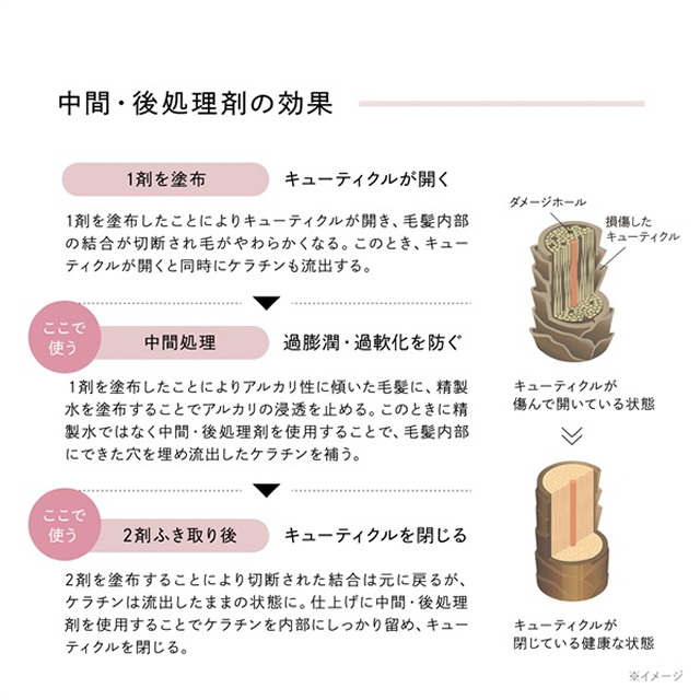 酸の力で1剤の作用をすばやく止めてダメージ軽減