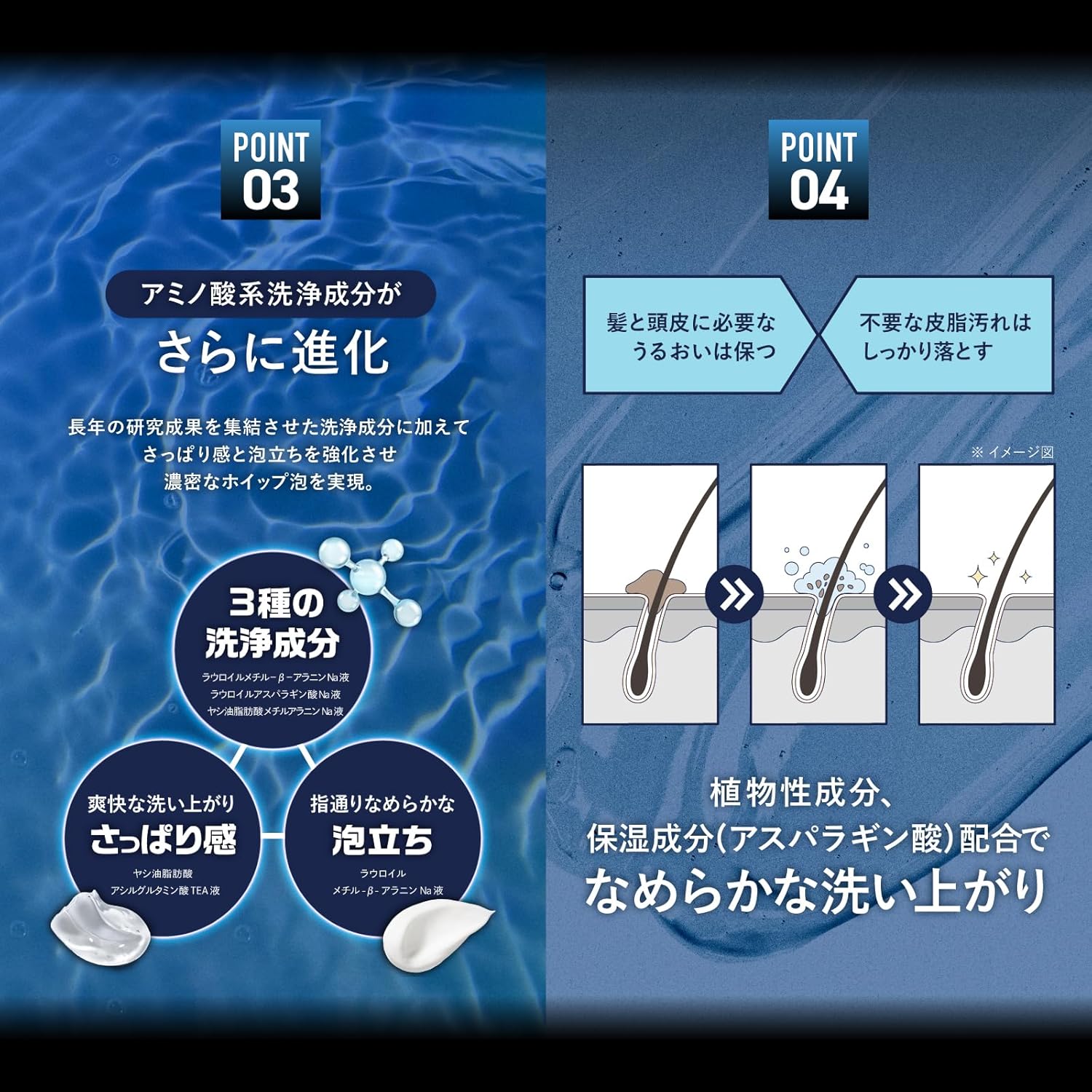 5種類のアミノ酸系洗浄成分*が、たくましい洗浄力と頭皮へのいたわりを両立
