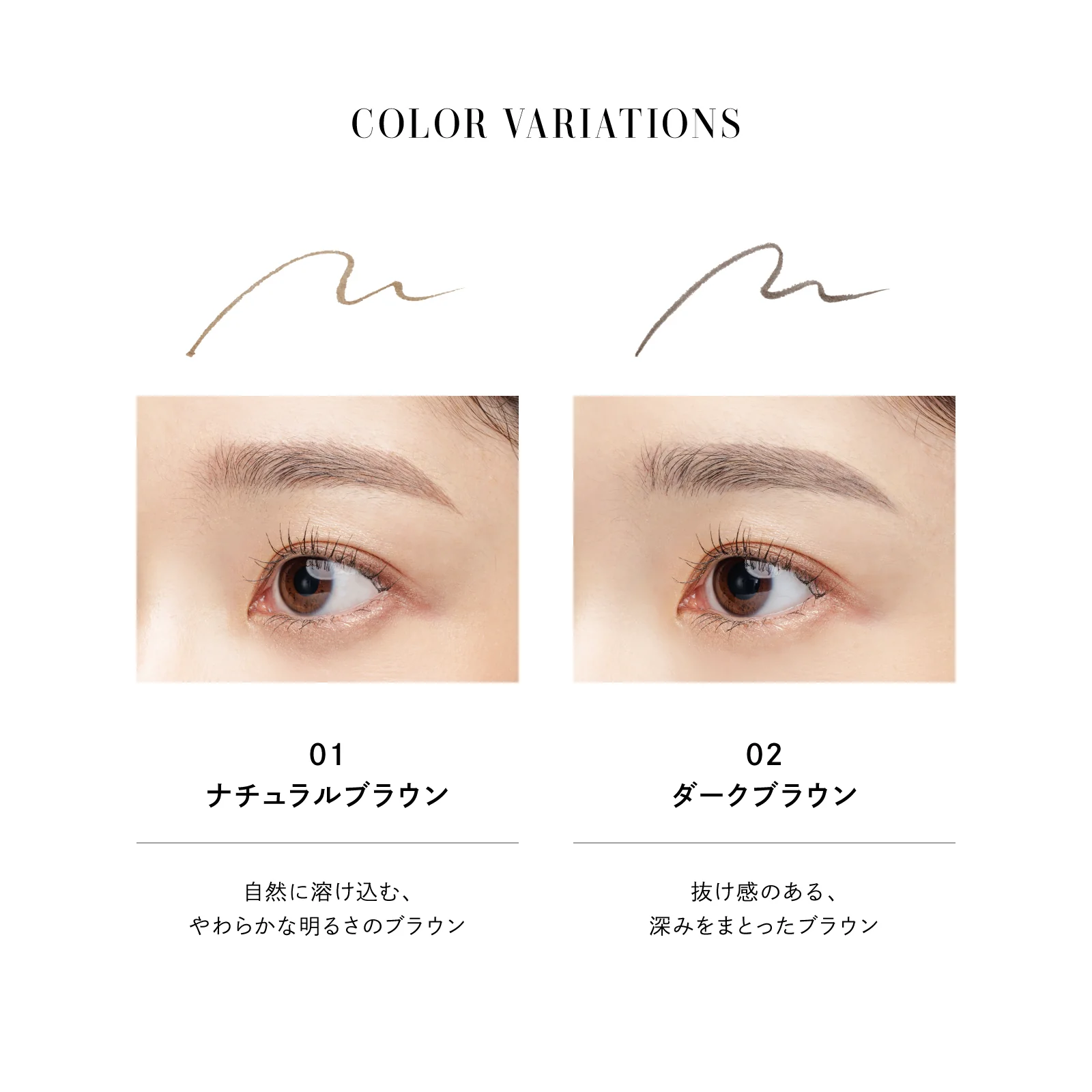 重ねてもふんわりとした抜け感のある自然な発色で洗練されたナチュラル眉が叶う。