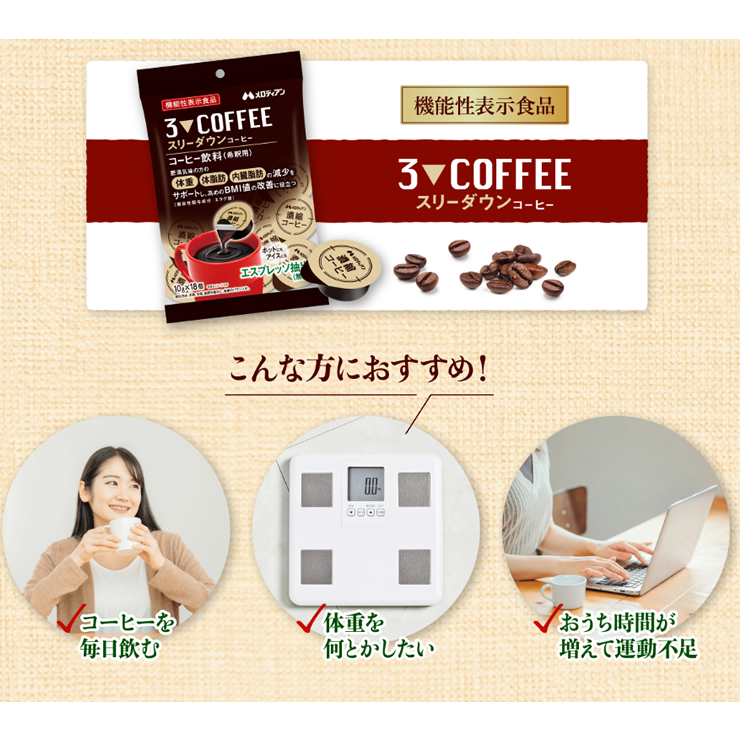 メロディアン 機能性表示食品 スリーダウン コーヒー (10g×18個)