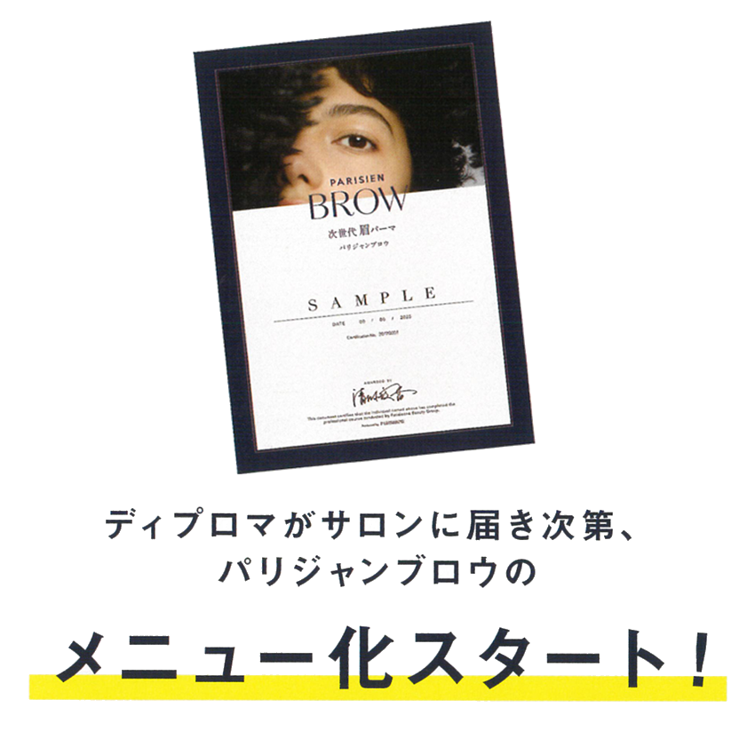 ディプロマがサロンに届き次第、パリジャンブロウのメニュー化スタート!