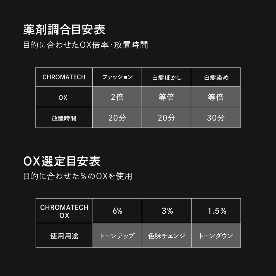 ※白髪染めの場合は「白髪染め設定明度一覧表」を参考に Da(DARK BOOSTER)をMIXします。