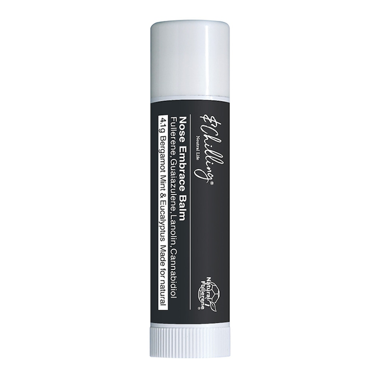 バームの青い色にもなっている抗炎症作用のあるグアイアズレン、ビタミンCの約250倍の高い抗酸化があると言われているフラーレン、人の皮脂にも似ている高保湿作用のあるラノリンを配合したノーズバーム。優しく包み込むように鼻を保護します。