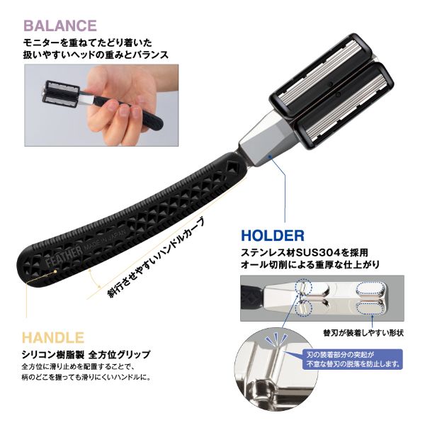 FEATHER®初の3 枚刃を搭載したプロ向けスライド式カートリッジ替刃。