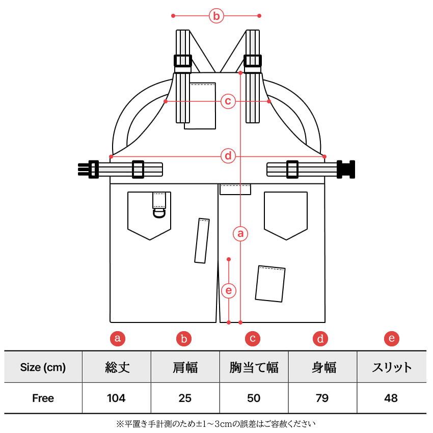 Size(cm) 総丈 肩幅 胸当て幅 身幅 スリット