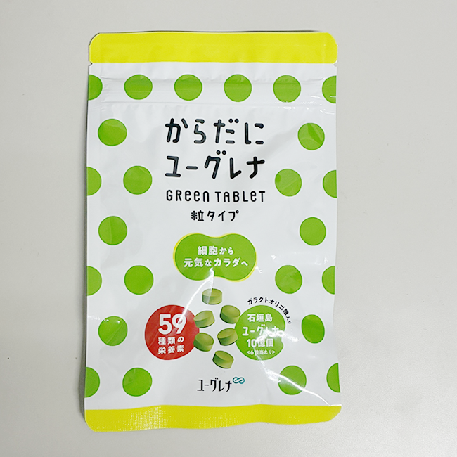 ユーグレナ米麹末(国産)、米デンプン、コエンザイムQ10、黒胡椒抽出物/HPMC、ビタミンC、ビタミンE、ステアリン酸カルシウム、カラメル色素、クチナシ色素、トマト色素