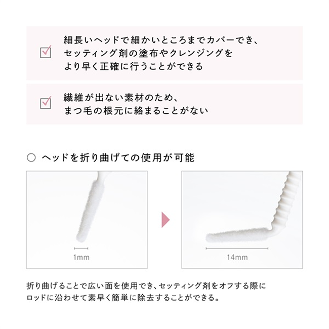 セッティング剤をオフする際にマイクロブラシの先端を曲げ、 ロッドに添わせるようにオフすると素早く簡単に除去することができます。