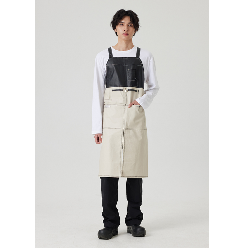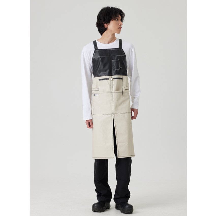 アーティザンクレーエプロンは、 防水性に優れた素材で製作され、 クラシックなオーバーフィットシルエットが高級感を演出します。