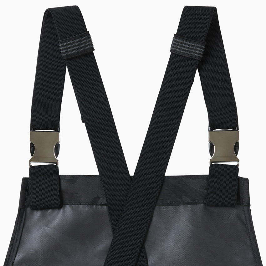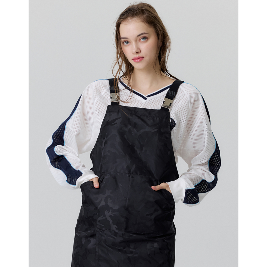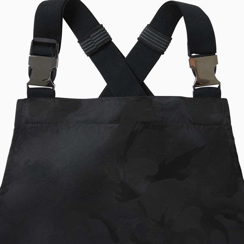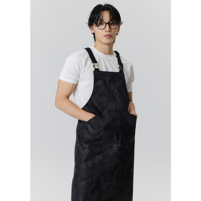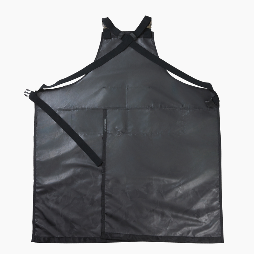 生活撥水はもちろん、染毛剤、化学薬品の使用に不可欠な耐久性の強い生地で製作し、負担にならないカモフラージュパターンがスポーティなムードを演出します。