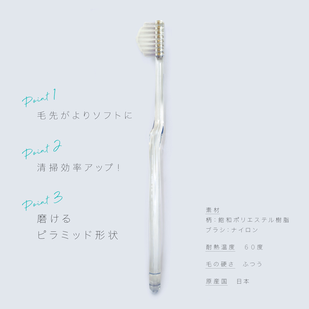 特許技術を用いた独自のピラミッド形状が歯と歯にぴったりとフィット!