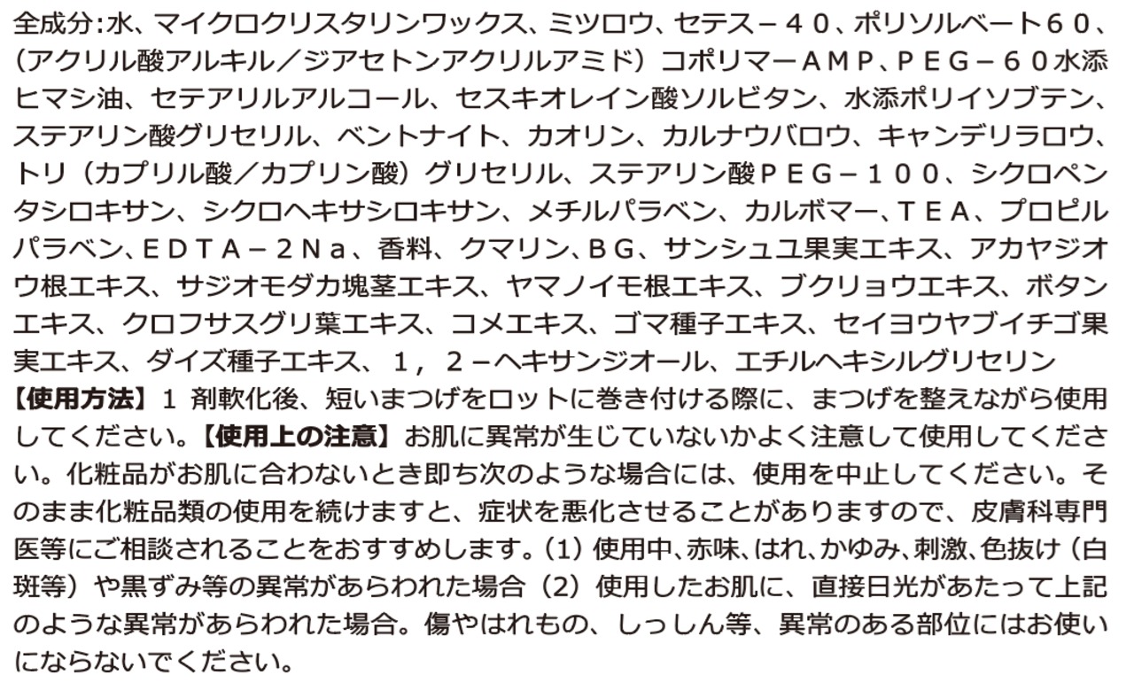 ワックスと違う点はオイリーではないという点で、まつ毛の軟化を妨害することなく、固定がよくできる製品です。
