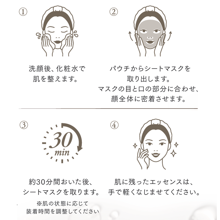 4.肌に残ったエッセンスは、⼿で軽くなじませてください。