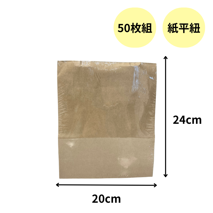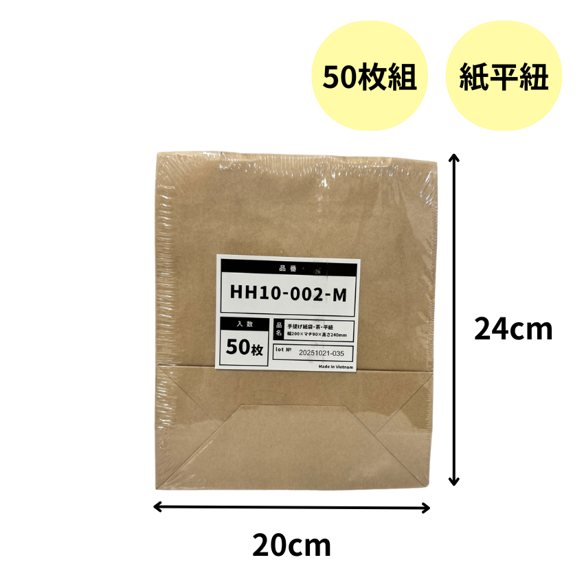 手提げ紙袋 茶 平紐 (幅200×マチ90×高さ240mm) 50枚組